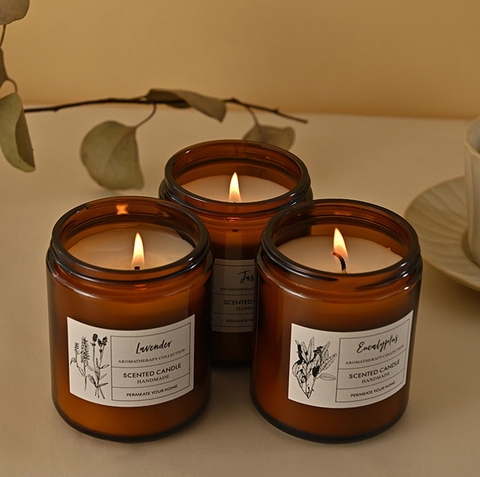 Großhandel Small Amber Jar Glas Soja Wachs Custom Logo Duft kerze mit Deckel
